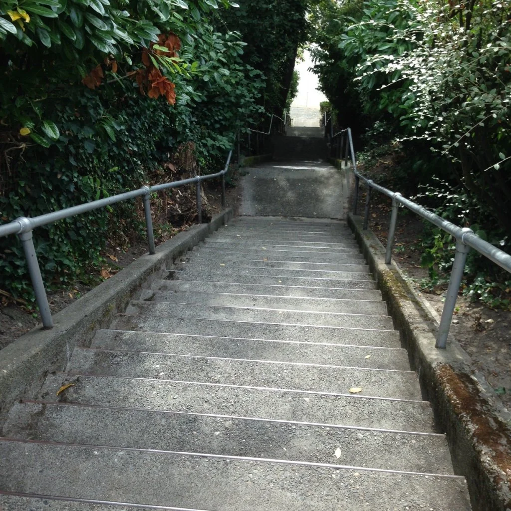Feet like running water have shallowed out each step, stairway scoured white and smooth as shell.